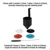 - Comes with 4 nozzles (1.5 mm, 1.8 mm, 2.2 mm and 2.6 mm), viscosity measuring cup & and cleaning brush