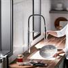 - Professional-style faucet with an easy-to-clean coated hose and removable coil