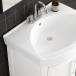 This vanity features a high-quality white ceramic basin for the surface, to not only showcase a stylish design but also adding more glamour to your bathroom's look. Each detail exudes elegance, from the crisp White finish that radiates modern to the brushed nickel hardware that whispers of sophistication. Despite its compact size, this vanity presents enough spacious storage with the expansive drawer glides open with effortless grace and the elegant doors unveil adjustable shelves.