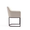 With a modern design and a hint of vintage inspiration, the Serena Dining Armchair has a simple chic profile with unexpected details. A slim geometric open base supports a plush foam-filled upholstered seat and back. The curved back creates an ergonomic shape that offers a comfy spot for family, friends, and dinner guests. The versatile design allows the Serena to effortlessly accent any style dining or living space. Delivered to you Fully Assembled! No Assembly Required!