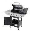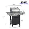 This 3-burner propane gas grill features heavy-duty cast iron cooking grates for superior heat retention and searing performance, paired with a durable stainless steel outer frame for long-lasting use. Equipped with three 9550 BTU main burners and an 8500 BTU side burner, it delivers powerful, multi-zone cooking for versatile outdoor grilling. Designed for convenience and mobility, it’s ideal for patios, backyards, and outdoor gatherings.
