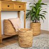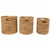 Add some texture to your home with this lovely basket set. These simple seagrass baskets are a wonderful rustic addition to the living room, kitchen and bedroom. They are great functional pieces to store blankets or to display as a simple accent by themselves. Features: Sturdy cylindrical baskets. Light brown woven design. Large grip handles are designed in the basket for easy carrying. Smaller basket can be nested inside larger baskets. Can hold various households or office items. Recommended for indoor use only. Dimensions: Small: 12-in H x 10-in dia; Medium: 13-in H x 12-in dia; Large: 14-in H x 14-in dia. Material(s): seagrass