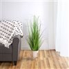 Provide a perfect touch of nature to your space with this artificial onion grass plant. This faux plant is made to look lifelike but requires no maintenance. This lush plant is nestled inside a simple yet elegant black pot making it easy to place anywhere you wish. Whether you're looking to add some greenery to your desk side table or win Dow this plant will be the perfect solution to any décor style. Features: Artificial potted onion grass plant. Green onion grass has touches of red for a realistic appearance. It comes in a simple black pot. For in Door or covered outdoor use. Dimensions: 40-in high x 18-in diameter. Material(s): plastic