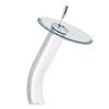 - The clear glass disc spreads the flow of water into a spectacular waterfall