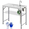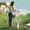 Discover the convenience of the Outsunny portable camping sink table, your great outdoor companion! This table features a metal faucet and spray nozzle for powerful cleaning, two built-in sinks with expandable drain pipes. Designed for any fish cleaning or outdoor cooking task, this outdoor prep table with sink is a great addition to your camping or fishing gear.