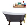 Streamline 27W x 55L Matte Grey Acrylic Clawfoot Bathtub with Matte Oil Rubbed Bronze Feet and Reversible Drain with Tray