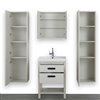 Indulge in this stunning and spacious ash grey Streamline vanity set. The integrated sink and mirror lend to a polished and efficient design. It includes 2 spacious cabinets with soft closing doors, as well as 2 large slide-out drawers. This vanity set of