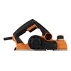 The Triton TMNPL planer features a 450 W motor that delivers 32,000 CPM (cut per minute). Its two blade cutterhead is equipped with 2-3/8-in (60-mm) reversible carbide blades for a smooth and precise finish. The adjustable 6-stop depth control allows planning thickness up to 1.5-mm.