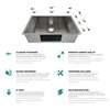 Experience sleek, modern design with this handcrafted zero-radius corner (90-degree angle) undermount sink. Crafted from premium 16 gauge 304 stainless steel, it features sharp zero-radius corners and rear-positioned drain to maximize every inch of bowl and cabinet space. Built for durability and style, this sink is the perfect upgrade for any contemporary kitchen looking to combine form and function effortlessly.