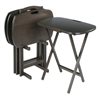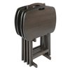 Make entertaining simple and easy with the Winsome Wood Lucca 5-Piece TV Table Set. A perfect companion piece for a casual meal in front of the TV or on the patio. Four folding snack tables great for daily use and compact enough to store in the closet. An upright stand is an innovative addition to this set as it serves as a rack to store the folded tables discretely when not in use. These beautifully finished trays are convenient and make meal serving simple when you need it. The wide 22.8” oblong portable folding TV table set provides users easy handling so they can lift the trays off the stand using the cutout handles in the table. You can move them closer to a sofa, chair or even into a different room. Winsome TV tables are ideal for small apartments, dorms and offices. They can also be used to prop up a laptop, play cards or other board games, apply nail polish or sort coupons.