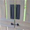 Enhance privacy and style with the 16 x 14-ft Timber Frame Pavilion Privacy Wall with Barn Doors. Designed to fit Yardistry’s pavilion, it features 4 panels, 2 fixed and 2 sliding, for flexible coverage. Black hardware ensures smooth, secure door operation with handles and latches included. Made from premium lumber in a rustic timber grey finish, the vertical barn board design adds charm and durability. Install it on either the 14 or 16- ft side to create a private, cozy retreat. It's a perfect upgrade for your backyard oasis. This item includes the privacy wall ONLY. The pavilion is NOT included.