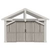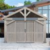 - Vertical barn board design, finished in a timber gray stain to seamlessly match the 16 x 14-ft Timber Frame Pavilion