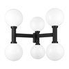 - From the Laurent collection comes a six-light outdoor post-mount fixture with a dose of Art Deco attitude. Dressed up with six opal white glass globe shades and cylindrical black finish aluminum elements.