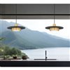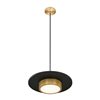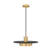 Repurpose an iconic palette and style with a single-light pendant that makes a statement in low-key spaces. This modern gold finish steel luminaire blends basic shapes including cylinders sandwiched by a matte black disc, eye-catching and refined. Dimmable LED lighting is perfect for mood lighting as it flows through a frosted acrylic shade.