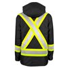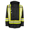 This high-visibility parka is made from polyester and equipped with a quilted lining and polyfill insulation. With its polyurethane-coated shell with sealed seams, it is water-repellent and will protect you from snowy and rainy conditions. Its detachable and adjustable hood accommodates a hard hat. It has reflective tape over contrast stripes to ensure your visibility, in addition to adjustable cuffs for your comfort and multiple pockets for greater convenience.