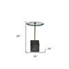 HomeRoots 22-in Black and Clear Glass and Marble Round End Table