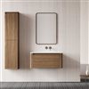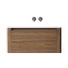 - Floating vanity made of solid wood and moisture-resistant plywood with American walnut veneer, ensuring durability in wet conditions
