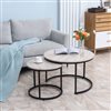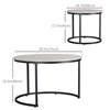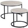 HOMCOM White Grey MDF/Black Metal Round Nesting Coffee Tables - Set of 2