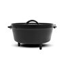 Bring the convenience of home to the campfire with the Pit Boss Cast-Iron Dutch Oven. The Pit Boss Dutch Oven is designed for the outdoors with features like 3 built-in legs to support the oven over burning coals, a stainless-steel bail handle for hanging over a campfire tripod, and a built-in notch for inserting a thermometer without ever having to remove the lid. In addition, the tight-fitting lid can be used as a side griddle, it works to seal in heat and moisture, features a flat surface for stacking extra ovens, and has a rim around the edge to prevent stacked coals from falling in your food when lifting. It comes pre-seasoned and ready to use right out of the box. It holds 8 quarts, has a 14-in diameter, can easily accommodate recipes for 16 or more, and has built-in side handles to take the dutch oven from the fire to the table with ease. Care Instructions: Rinse with water only. Dry well, and season whenever the bottom starts to lose its well-oiled shine.