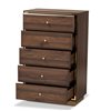 Baxton Studio Cormac Walnut Brown/Gold 5-Drawer Standard Chest