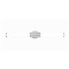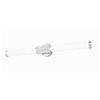 Step up to sophistication with this modern LED vanity bath light. Beautiful in an en suite, it boasts a generous length with cylindrical opal glass diffusers for inviting illumination. Its steel frame includes a smooth bevelled wall plate and fluted cuff, all in an elegant brushed nickel finish that gleams in the light.