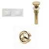 - You can see them when you track your order on our website. THIS PRODUCT INCLUDE(S): 1x ceramic top in white color (1148), 2x units of bathroom sink drain in gold color (20328), 2x units of overflow cap in gold color (20338).