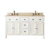 Hamilton 60-in Bathroom Vanity Combo Hamilton Collection is created for those who appreciate a stylish piece of furniture rooted in Americana design. The Hamilton vanity combo reflects a touch of Europe. Solid poplar construction and plenty of storage space make the Hamilton the practical choice for a wide range of bathroom styles. The combo includes a durable top and oval sinks. Solid poplar wood and MDF Pre-drilled for 8-in widespread faucet Dual vitreous china oval undermount sinks 4 soft-closed doors 3 soft-closed drawers 2 adjustable shelves Adjustable height levelers