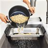 Inteos workstation sinks simplify meal prep thanks to the Inteos Large Colander. The large colander is designed to fit all BLANCO Inteos workstation sinks within the Inteos accessory holder. This multi-purpose tool is perfect for straining pasta and rinsing produce and can slide along the sink’s angled edge. Easily stack underneath the cutting board or store neatly in the Inteos Storage Organizer Bag. Experience culinary bliss. Do more with Inteos.
