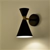 - Black finish outside contrast with an inner white finish, accented by brass details, gives an attractive visual for your space with this wall sconce