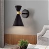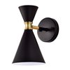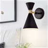 Designed in an attractive asymmetric hourglass shape, the wall sconce features a mixed metal and aluminum streamlined silhouette. Outer black with brass highlight finish matches inner white, create a visual contrast for the light fixture. It creates an elegant appeal to your home decor and adds a luxury charm to modern interiors.