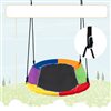 Enhance family fun with this 60-in oval-shaped saucer swing. Designed with safety in mind, this tree swing can support up to 700 lb with its sturdy and anti-rust galvanized steel frame and an Oxford fabric seat. The swing comes with LED lights offering 8 modes for enchanting nighttime play. Easy to assemble and disassemble, this swing is perfect for outdoor and indoor spaces, as well as for travel and storage convenience. Colour: Rainbow