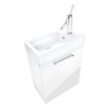 This single sink bathroom vanity from the Boutique collection has an enclosed storage space under the sink. Its white acrylic integrated sink, bold style and glossy white finish will give to your bathroom a modern look.