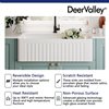 This DeerValley Double Bowl Farmhouse Kitchen Sink adds a touch of country-chic style to your kitchen, perfect for rinsing dishes and filling stockpots. Crafted from high-quality ceramic, this white farmhouse sink features a smooth, glazed finish that is durable, stain-resistant, and able to withstand everyday use. With its reversible design, this sink offers two different options for the exposed face, allowing you to choose based on your personal preference and kitchen decor. DeerValley is committed to meeting your needs and enhancing your kitchen experience.