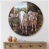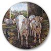 Designart 29-in x 29-in Two Cows in the Stable Farmhouse Metal Circle Wall Art