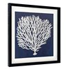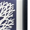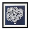 Refine your coastal decor with this eye-catching blue and white sea fan shadow box. Featuring a black frame, this bold blue and white artwork is made using hand laid paper pulp in a sea fan design encased in glass. The high contrast of the white on the blue backing makes for a luxurious addition to any space