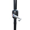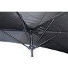 This half umbrella is perfect for small spaces or patio decks. It has a black aluminum pole and frame, a crank, and a black cover. It is recommended to use it with a haf base umbrella.