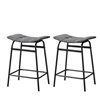 Give your kitchen or entertainment area an upgrade with this set of 2 fashionable and contemporary counter height barstools. The sleek grey fabric upholstery paired with sturdy black metal legs creates a contemporary and trendy style that is sure to impress. The backless design and padded saddle seats ensure maximum comfort while you relax and unwind. These barstools are easy to assemble with illustrated instructions included and come with a 2-year limited warranty for peace of mind. With a convenient footrest and sturdy construction, these counter height barstools are the perfect addition to any chic space. Pair these with a counter height table (sold separately) and refresh your decor with these fashionable style and comfortable barstools!