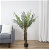 Bring a piece of the tropics to any indoor space with this stunning artificial palm tree. It will add a touch of nature while enhancing your decor. It is also easy to care for since it will never need watering. Product Features: Features a sturdy trunk with vibrant two-tone green fronds. Wired branches allow the palm tree to be shaped as you wish. Comes in a black plastic pot filled with artificial moss and dirt. Recommended for indoor use or outdoor covered use. Dimensions: 47-In high x 39-In diameter (fully fluffed). Pot: 5-In high x 6-In diameter. Material(s): plastic/metal/natural fiber