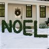 This lighted 'Noel' sign is perfect for extending well wished to neighbours and passer byers all season long. This sentiment will be the perfect addition to your holiday decor year after year. Product Features: Pre-lit with 135 warm white lights. Bulb size: micro-wide angle. Bulb type: LED. Sturdy metal backing. Additional product features: LED lights use 90% less energy. Lights stay cool to the touch. No assembly required. Ground stakes included. Lights are UL approved and certified for indoor or outdoor use. Each letter requires 3 for a total of 12 AA batteries - not included. Overall Dimensions: 24-in H x 66-in W x 4-in D. Dimensions of each letter: 24-in H x 19-in W x 4-in D. Material(s): metal/pvc.