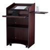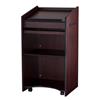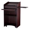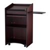 Aristocrat Floor Lectern The Aristocrat is a bold, executive-style lectern ideal for conference, training, and formal meeting rooms. High-quality cabinetry of woodgrain thermofused laminate Accented with attractive T-mold edging Features 4 concealed easy-roll casters (2 locking) for smooth mobility Side-mounted 16-in x 15-in slide-out shelf (35-lb. weight capacity) is at the presenter's right side for A/V equipment or other presentation needs 2 built-in 23.5-in x 18-in shelves provide ample storage space Ships ready for easy assembly