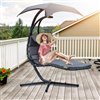 Relax and feel the breeze in the comfort of your own backyard with our Outsunny hanging lounge chair with canopy and stand. A solid steel frame provides durable support while the soft padded cushion invites you to settle in for a while. The contoured shape of the bed swings for outside curves with your body for maximum comfort while the grey colour can fit in with any outdoor decor. Sit down in this stylish outdoor patio lounge chair to enjoy beautiful summer days to their fullest!