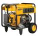This tough Dewalt portable gas generator is ready to take on any job site. The electric-start 389cc engine features low oil shut-off for lasting life. Idle control reduces noise and conserves fuel, and the tank has a 6.7 gallon capacity for 10.5 hours of runtime at half load. Never-flat tires offer portability, while the locking handle folds for compact storage. The 5700-watt gas generator has GFCI-protected outlets and the frame is made with hardened steel for durability.