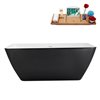 Streamline 59-in Glossy Black Freestanding Bathtub and Tray w/ Polished Chrome Centre Pop-Up Drain - 60-gal.