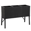 Grow a variety of beautiful plants, herbs, and flowers with this elegant raised garden planter. The compact size makes it a stylish accent for a variety of locations. Made from durable polypropylene with a sturdy steel frame, this sophisticated planter can be used either indoors or outdoors. It features three removable square plastic inserts that make planting easy. Plus, the elevated garden planter is easy to clean and maintain. Each insert can hold up to 9-L of soil. The classic black polypropylene wicker look will complement any decor style. The lightweight design makes it easy to move the planter from place to place. Add this lovely planter to the deck, patio, front porch, living room, or sunroom. No tools or assembly are required. This stylish garden planter is ready for use straight out of the box.