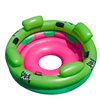 Spend your days of summer relaxing in this bright green and pink rocker. This round inflatable can fit four people in a sitting position with their feet in the water and their heads resting back, what more could you ask for this summer! You can stay at home or even travel with this lounger the next time you are invited out for a water fest. The inflatable is a round shape. Features four headrests and four sturdy handles. In the center of the inflatable there is a hole for your feet to hit the water. Comfortably holds up to four children. Great for floating, lounging and rocking. Constructed of a heavy-duty vinyl. Includes PVC patch repair kit. Not to be used by children under the age of 7. Inflated dimensions: 21-in H x 75-in W x 75-in D. Note: ships flat and does not come inflated.