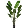 Vickerman 6' Artificial Potted Travelers Palm Tree. Transform your indoor space into a tropical oasis with Vickerman's 6-foot Tall Faux Potted Palm Tree. This lifelike artificial tree is the perfect addition to any home or office, bringing the beauty of nature indoors without the hassle of maintenance. The sturdy black planter pot ensures that your faux palm tree will stand tall and look amazing in any room. Crafted with attention to detail, this large artificial tree boasts 11 realistic leaves, making it the perfect choice for adding a touch of greenery to any corner of your indoor space. From living rooms and bedrooms to lobbies and conference rooms, this maintenance-free faux floor plant is the ideal solution for those who want the beauty of a tall fake plant without the upkeep. Looking for the perfect artificial tree for your indoor space? Look no further than our realistic indoor palm trees. With their lifelike appearance and easy care, they're the perfect choice for anyone looking to add a touch of natural beauty to their decor. Whether you're in search of an indoor faux palm tree or an artificial tree to add some vitality to your living room, this palm tree is sure to impress.