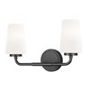 Delicate tapering and ribbed opal glass shades create a striking silhouette for this modern two-light vanity sconce. In matte black, it features a clean, refined silhouette that calls to mind industrial design influence and offers timeless character.
