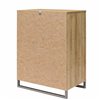 - The classic wood grain finish is complemented by metal handles and modern black U-shaped feet