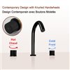 Add a splash of contemporary style and modern elegance to your bathroom with this double handle bathroom faucet. The arc clean lines and gooseneck spout create a sophisticated, high-end appearance. The unique arc spout provides a smooth water flow experience. Controlled by easy-to-adjust 2 knurled hand wheels, which are designed to meet your needs.