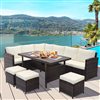 Costway 7-piece Rattan Patio Conversation Set With Sectional Sofa and Coffee Table - White